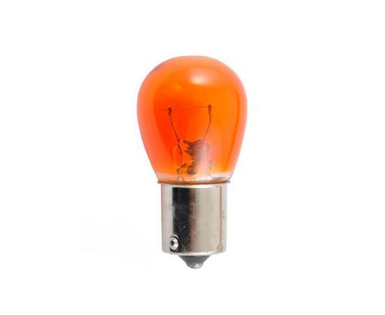 Лампочка накаливания с окрашенной колбой, в оранжевый цвет, излучает яркий желтый свет. Это дает возможность устанавливать лампочку в оптику с прозрачным стеклом. Цоколь BAU15s байонетный с одним контактом, он вставляется и поворачивается на 90 градусов. При потребляемой мощности в 21 Вт, сила светового потока 220 Лм. Рабочее напряжение 12 В, применяемость только для легковых автомобилей и двухколесных транспортных средств.